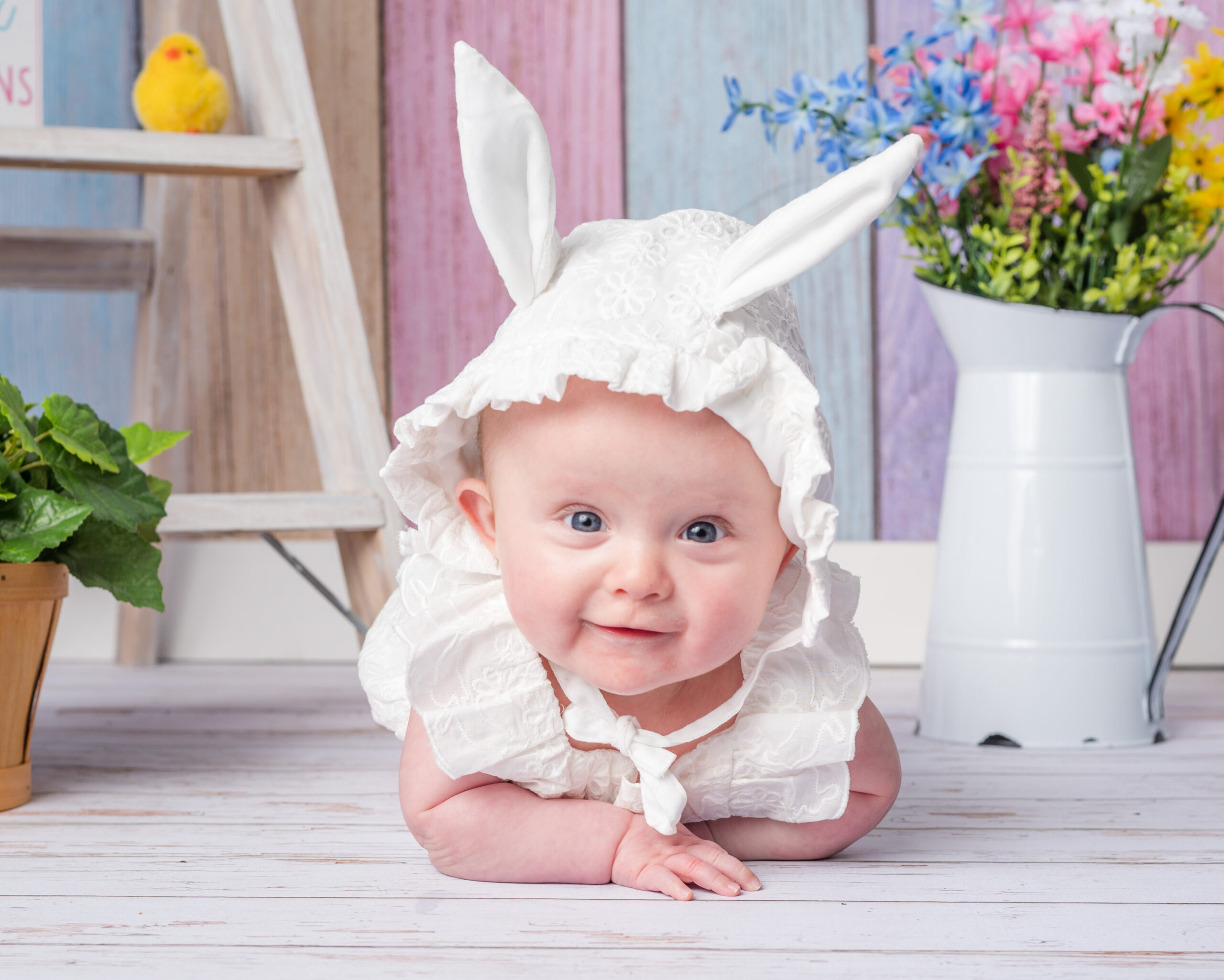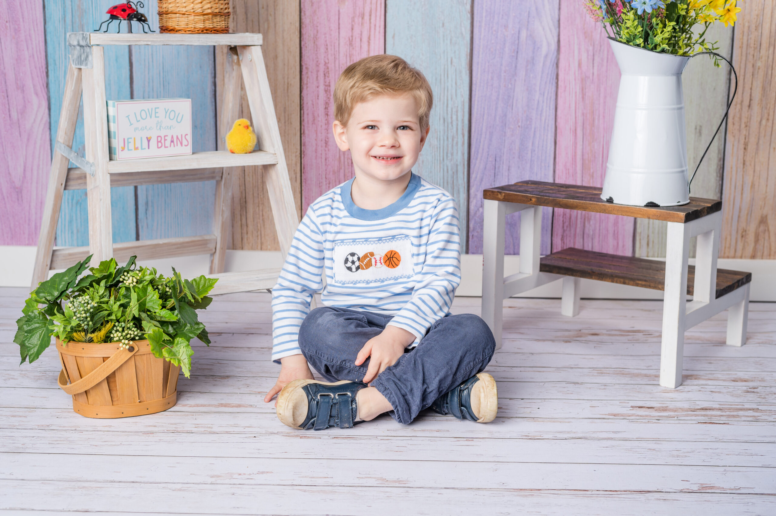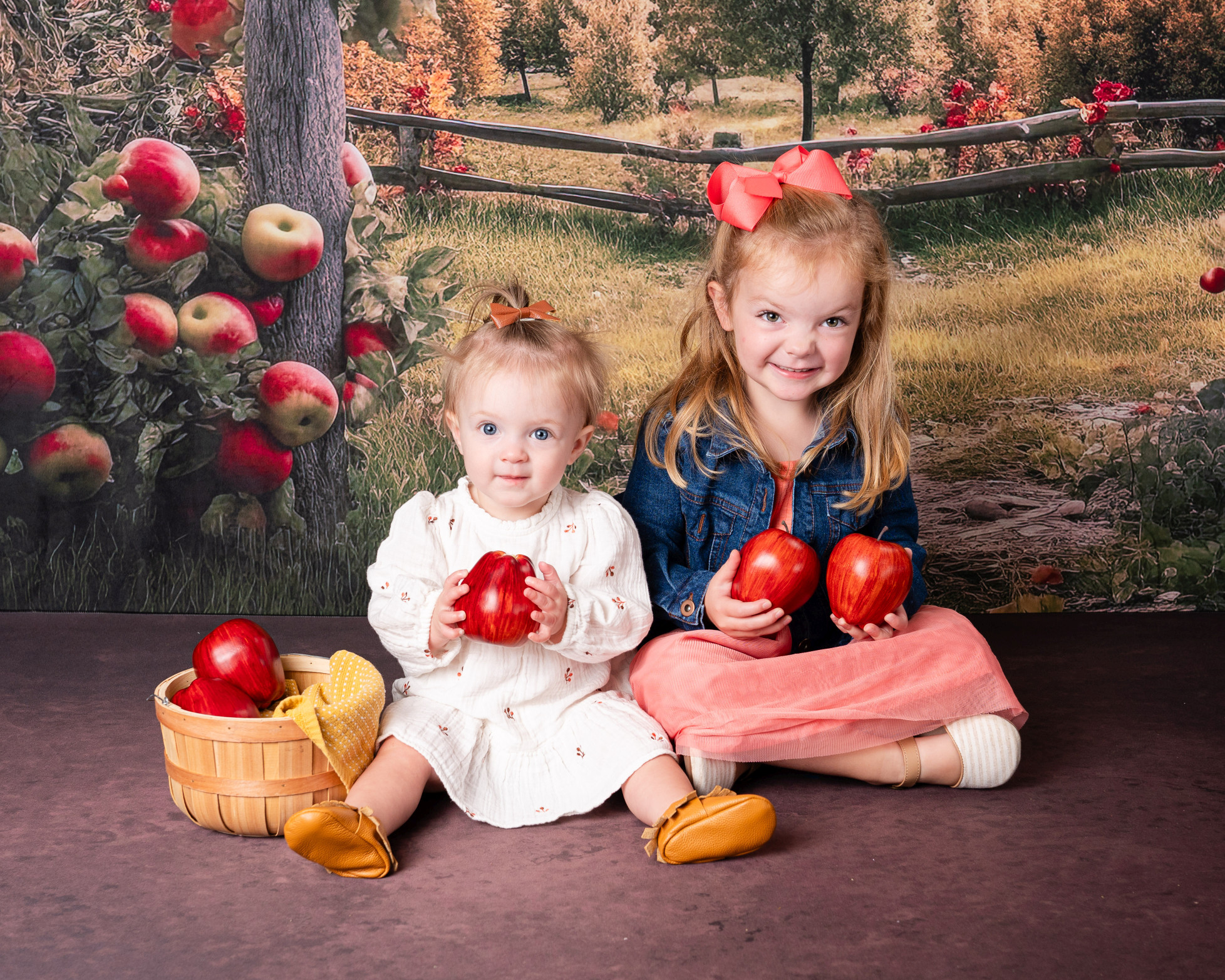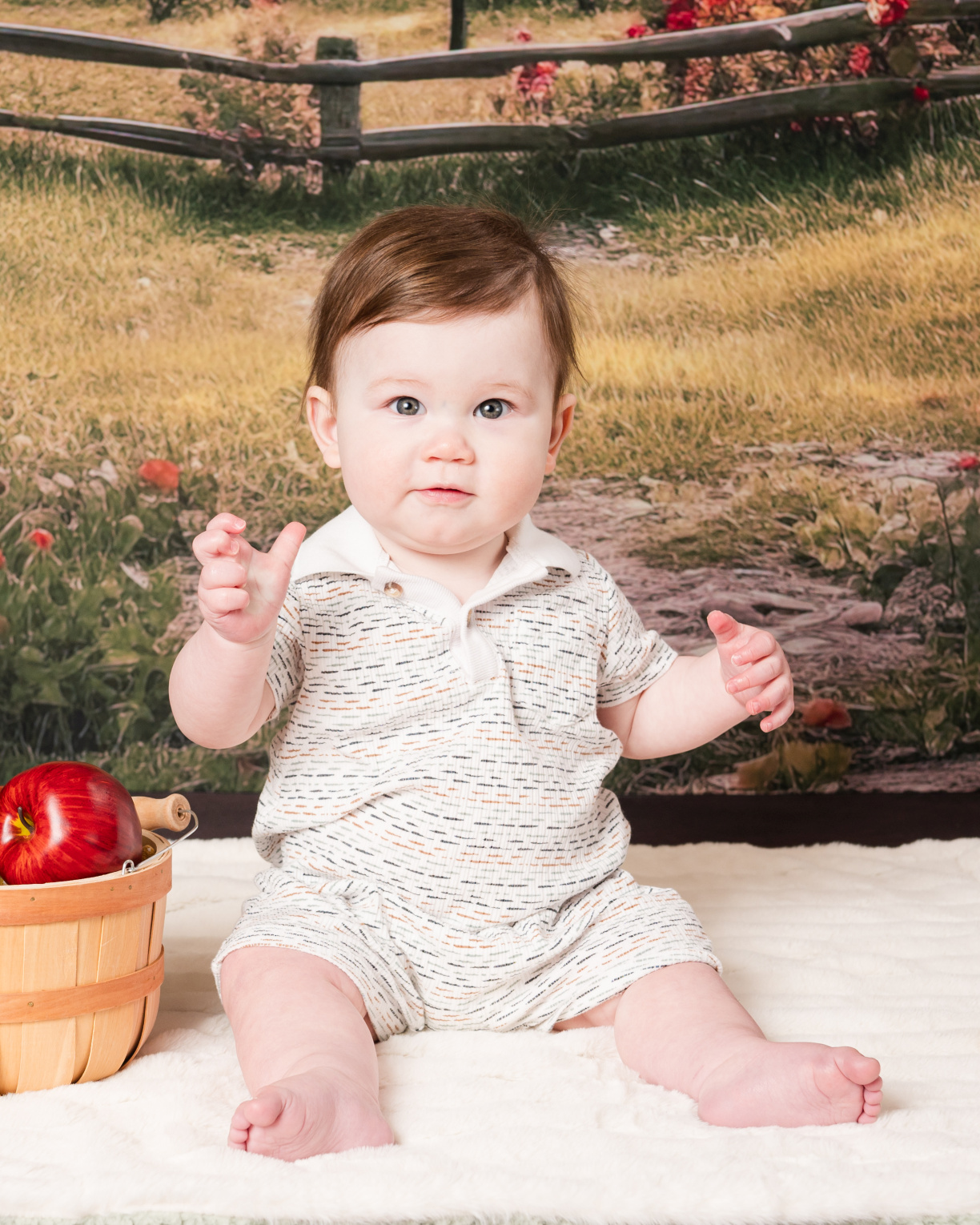 We’ll provide a choice of backgrounds and props that correspond with the current season. We won’t ever photograph kiddos on a green screen.